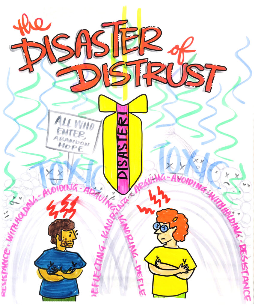 Graphic facilitation is the art of creating visual work processes for a group to work collaboratively to solve a challenge or bring a new idea to life. It involves a lot of planning and its value triples when the group not only co-create solutions together, but also build up team relationships. Graphic facilitators design and lead workshops or activities, interact with the group, and use a lot of hand drawn visuals to facilitate the session.